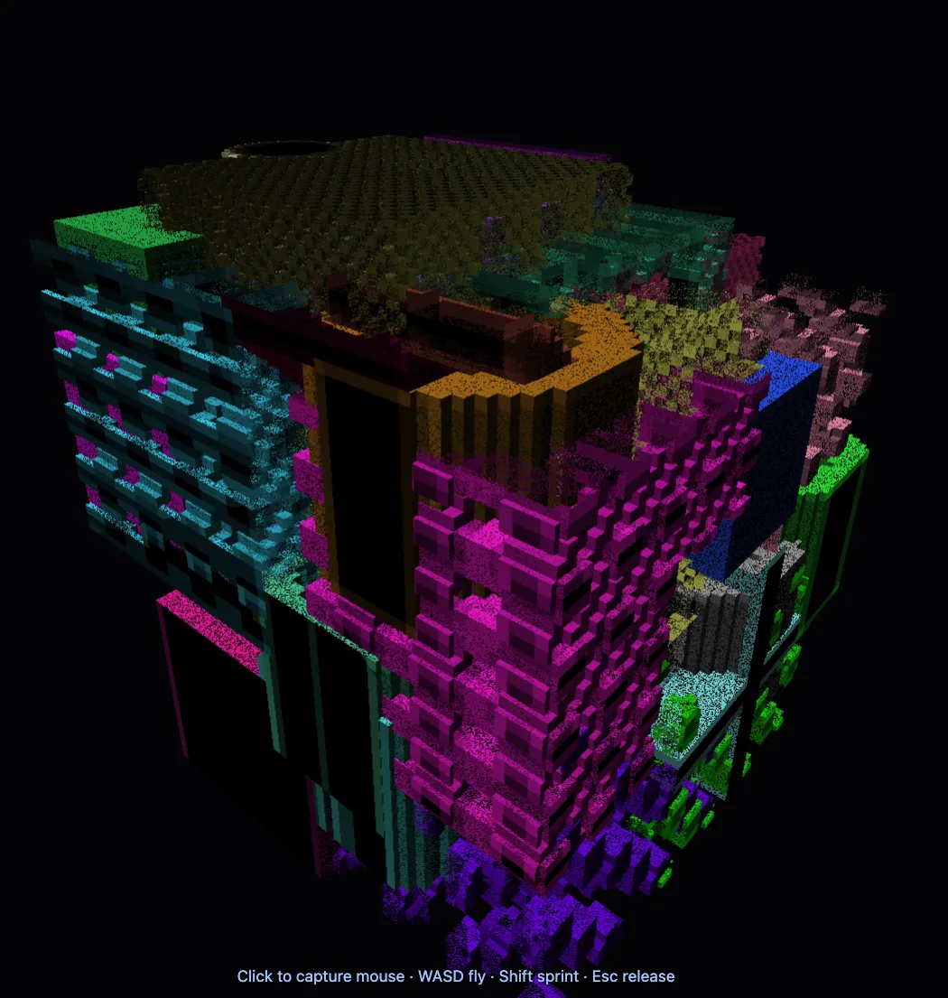 Then I convert the images (which I have the camera intrinsics for) back into a gaussian field. Boom - gaussian splat voxels.com.